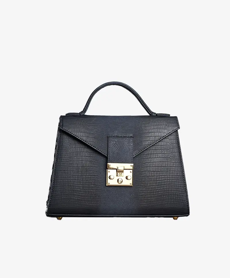Matières du sac: Cuir croco, cuir lisse et pagne tissé.
